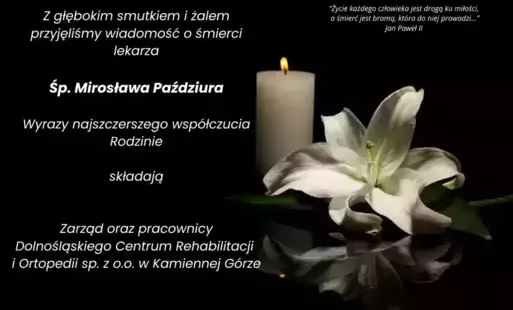 Zwiadomienie o śmierci Lekarza Mirosława Paździura